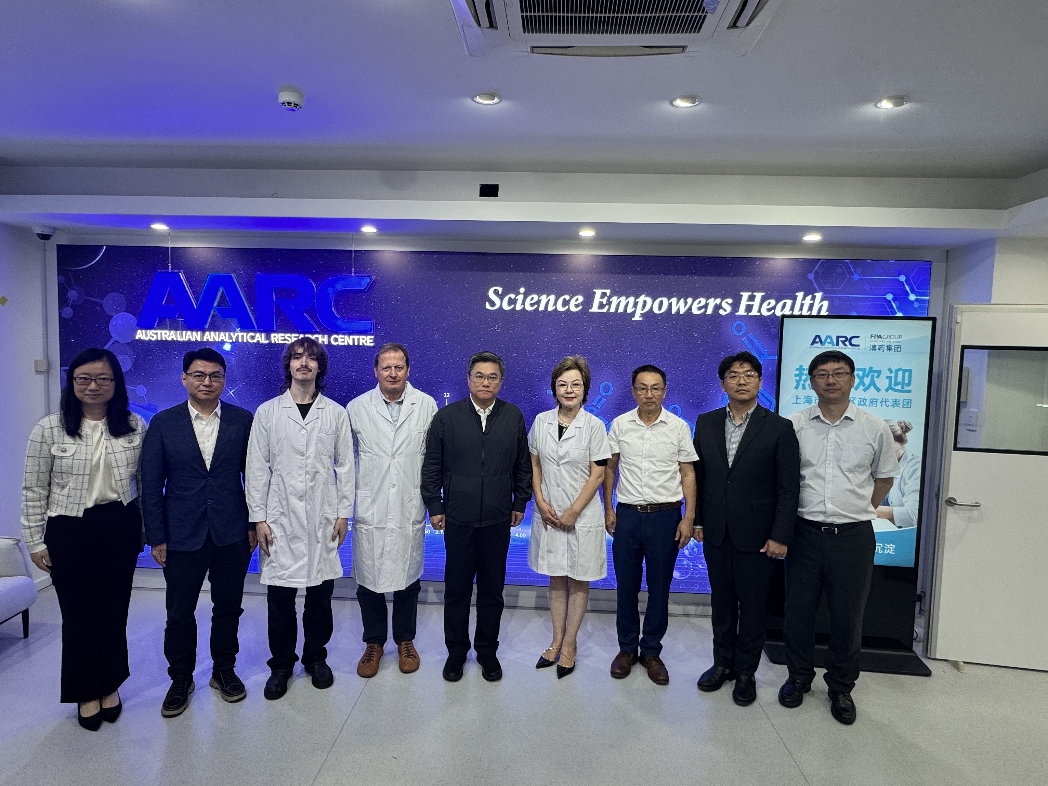 2026年3月11日,上海市杨浦区委书记薛侃、统计局局长余科辉等政府领导团一行,借2026上海杨浦创新发展招商推介会悉尼举办的契机,专程莅临澳药集团旗下澳洲研发和检测中心AARC考察交流。澳药集团首席科学家Tina Liu携核心团队热情接待,双方围绕深化中澳创新产业合作、共拓区域发展机遇等展开深度交流。