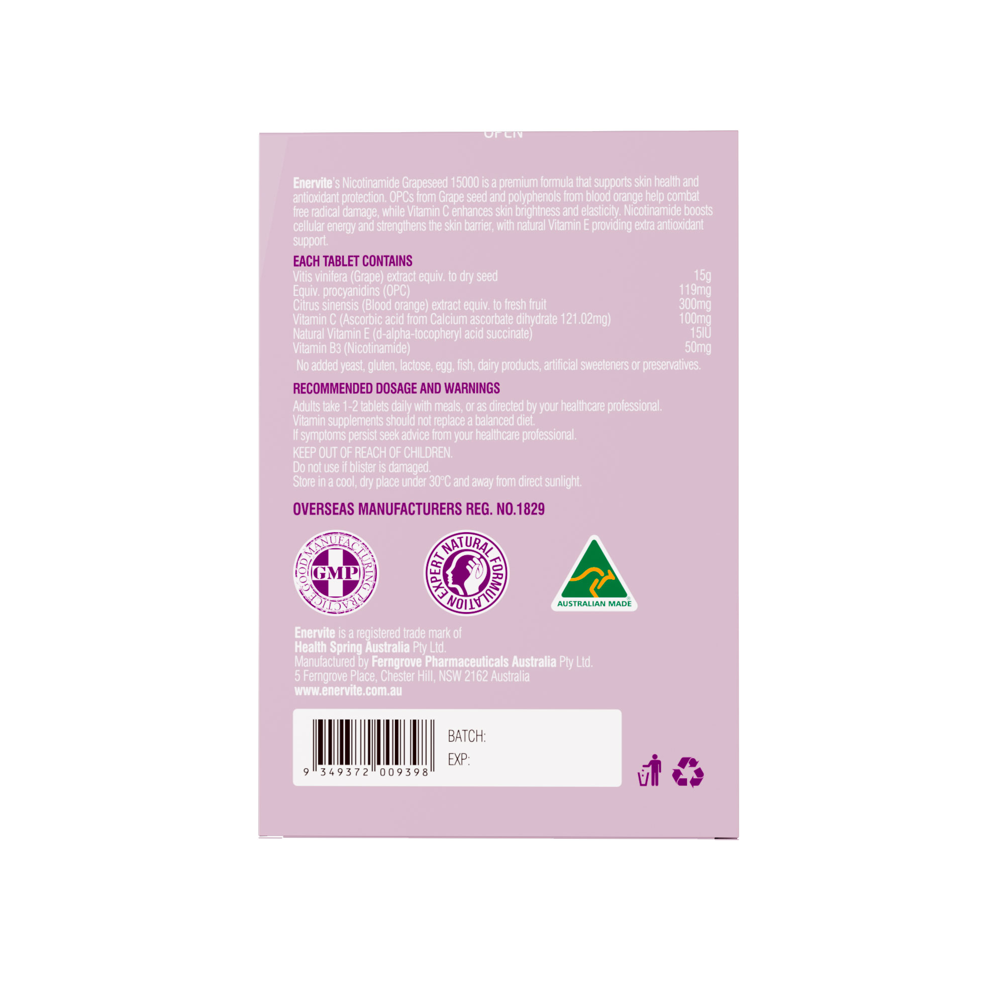主要成分:OPC-MpowerTM葡萄籽提取物、烟酰胺、血橙提取物、维生素C、维生素E